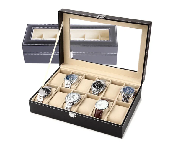 - ✅【Large Transparent Lid】Transparent Clear Lid Protects Your Watches From Dust, And Offers You An Open View Of The Displayed Watches & Jewelry. Latch closure design makes it easy to use and prevents from losing, practical for travel and outdoor.