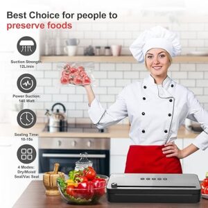 Bonsenkitchen Vacuum Sealer Machine, Automatic Vacuum Air Sealing System Food Modes and One Roll Starter Kit Vacuum Sealing Bags For Food Preservation and Sous Vide (VS3802-Black)